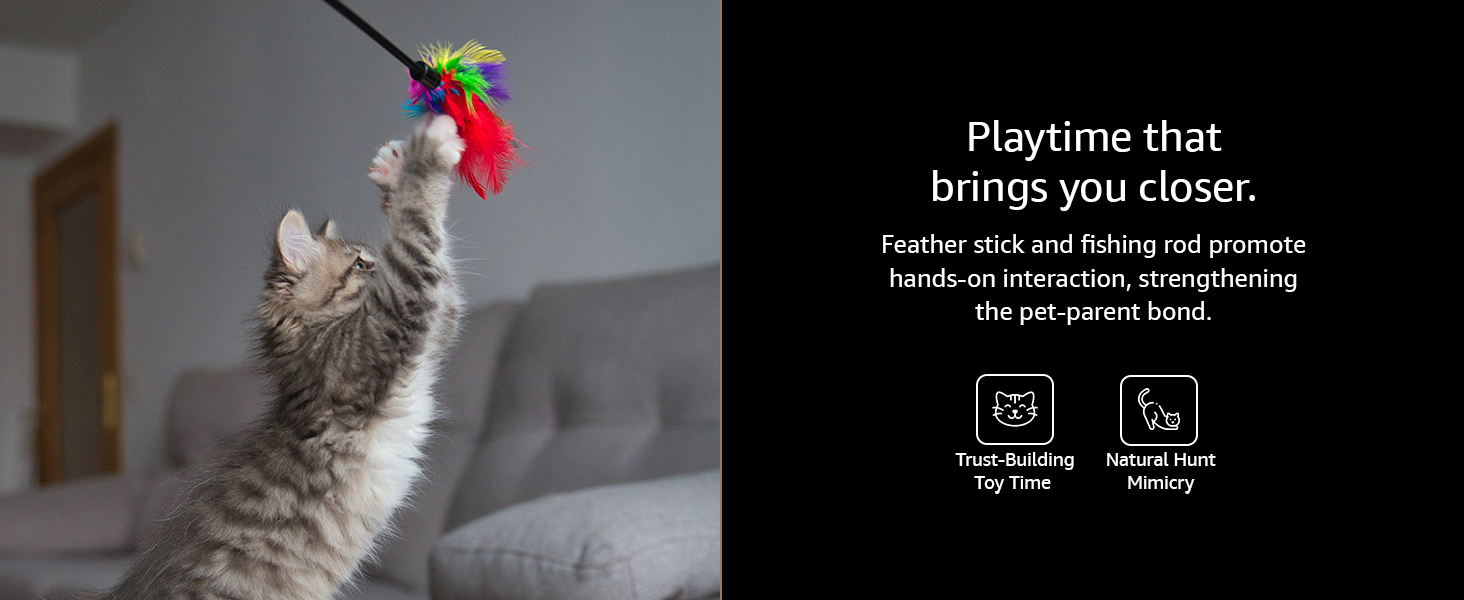 Enhances Bonding: Stick toys like the feather stick and fishing rod are interactive, fostering a deeper connection as you and your cat engage in play that mimics natural hunting behaviors.